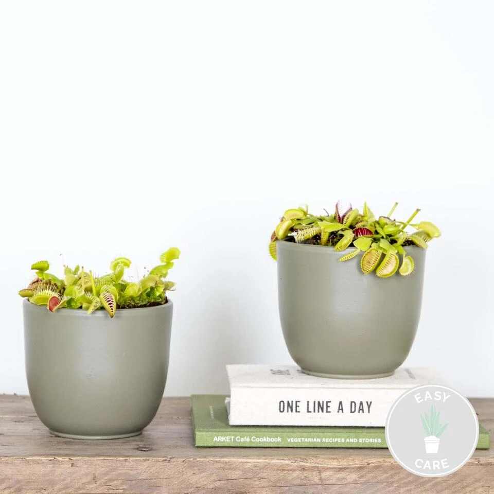 Met de Dionaea muscipula sla je twee vliegen in een klap. Deze vleesetende plant is een onderhoudsvriendelijke groene kanjer die ook nog eens vliegend ongedierte voor jou vangt. Naast dat deze kanjer zijn honger stilt met vliegende insecten, is hij ook nog eens onderhoudsvriendelijk. Wel houdt hij van natte voeten, maar verder heb je vrijwel geen omkijken naar deze killer!