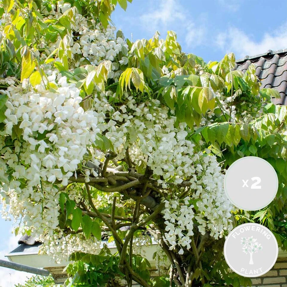 De klimplant Wisteria floribunda ‘Alba’, ofwel de blauwe regen is een onderhoudsvriendelijke plant. Deze plant is de witte variant op de welbekende blauwe regen en groeit met mooie, zeer lange én hangende bloemtrossen. Deze bloemtrossen verschijnen massaal in mei-juni, maar in september kan er zelfs nog een nabloei plaatsvinden. De blauw-paarse regen houdt van klimmen en heeft daarbij wel stevige ondersteuning nodig. Met de mooiste bloemen en een heerlijke geur is de Wisteria floribunda ‘Alba’ écht een aanwinst voor in jouw tuin.