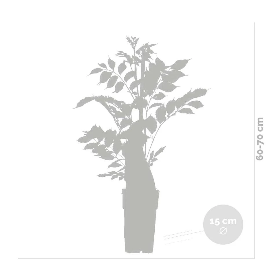 – De leveringshoogte van deze planten is 60-70 cm (gemeten van de onderkant van de kweekpot tot aan de bovenkant van de plant).
