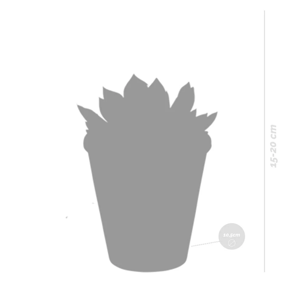 – De leveringshoogte van deze plant is 15 – 20 cm (gemeten van de onderkant van de pot tot aan de bovenkant van de plant).