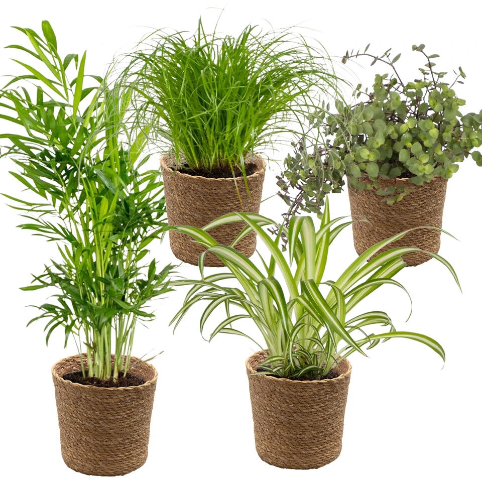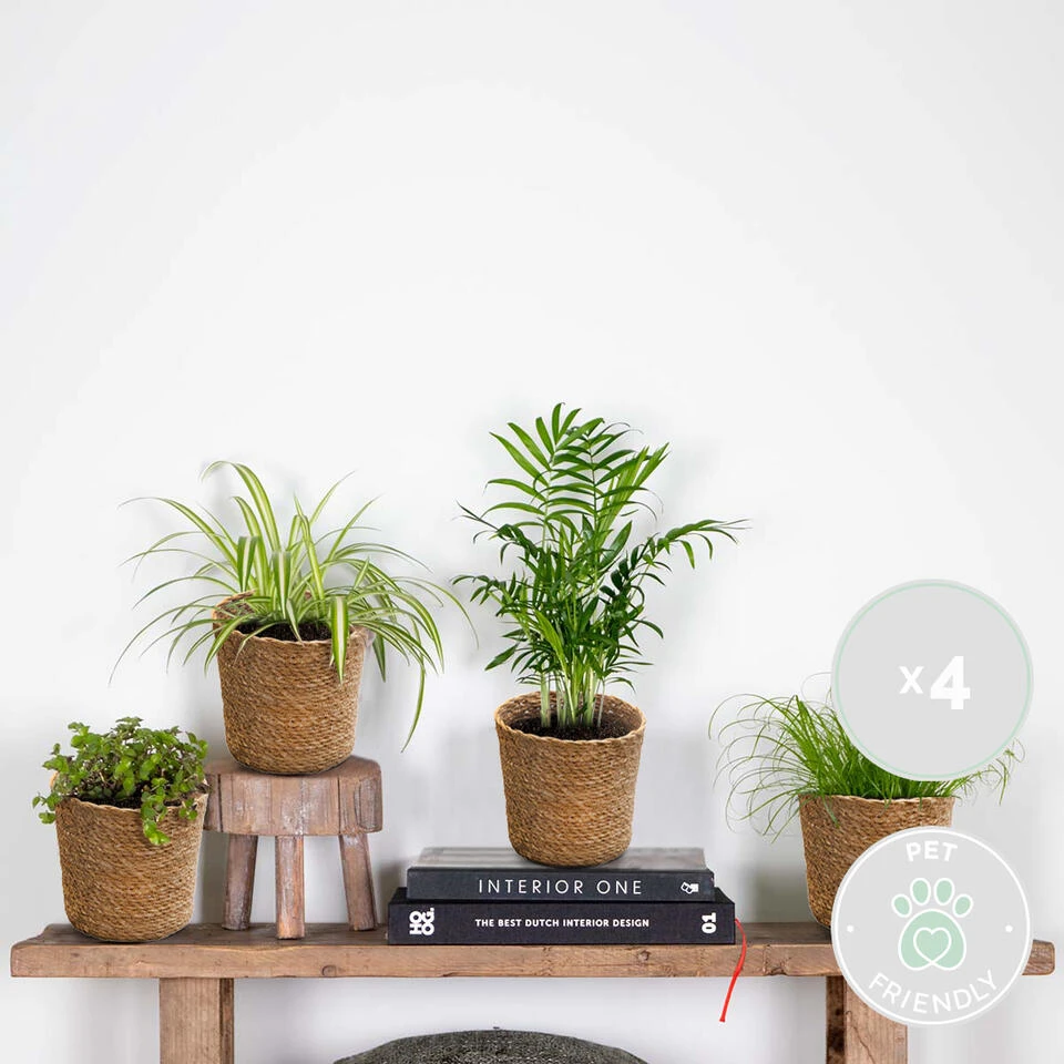 Deze huisdiervriendelijke kamerplanten mix incl. Zeegras Mand Lux, bestaat uit 4 niet-giftige planten welke veilig zijn voor je huisdieren. Mocht je trouwe viervoeter de planten dus toch niet kunnen weerstaan, geen paniek! Ze zijn allemaal veilig om aan te knagen. Daarnaast zorgen de plantjes ook nog eens voor gezelligheid binnenshuis, zijn ze ook nog eens praktisch én komen zij ook nog in de leukste manden! Ideaal toch?