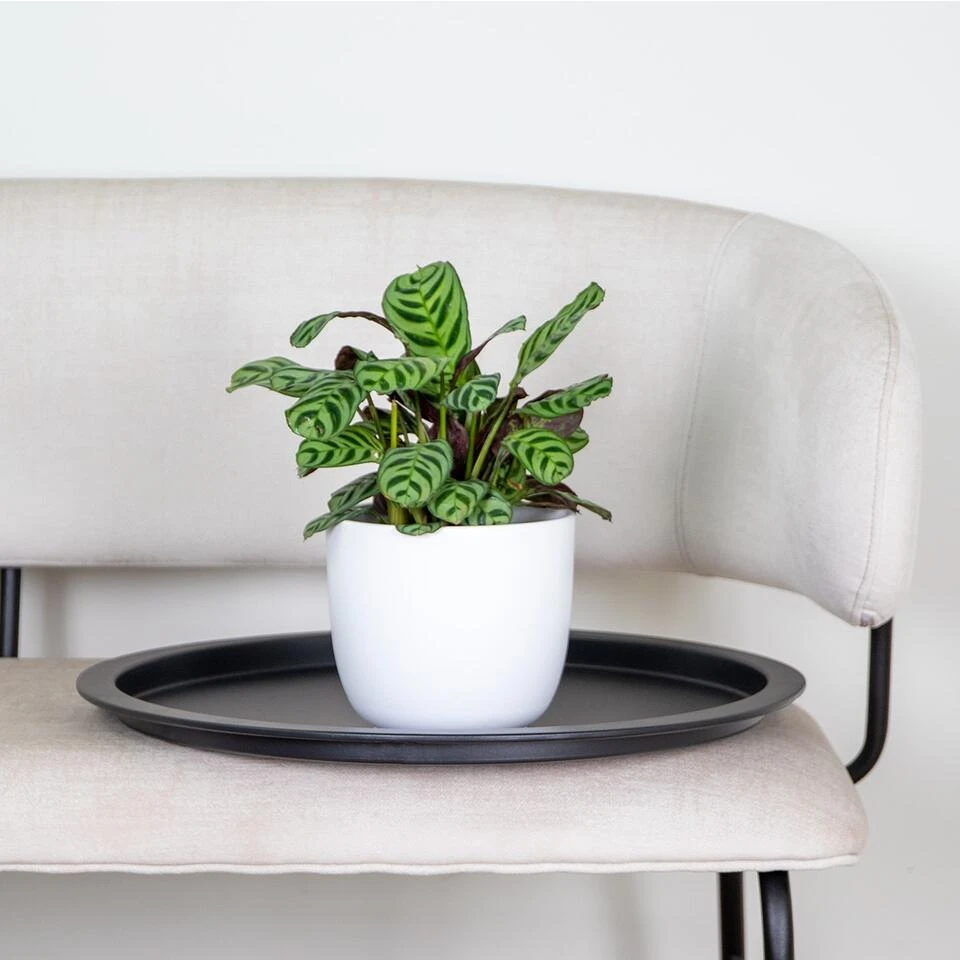 De ‘Ctenanthe Burle-Marxii’ komt oorspronkelijk uit Zuid-Amerika. Het zal je dan ook niet verbazen dat deze plant familie is van ‘Calathea’. Met zijn mooie, donkergroene blad en paarse onderkant weet hij iedereen te betoveren. Naast dat het een prachtige verschijning is, staat hij bekend om zijn sterk luchtzuiverende werking en zet hij koolstofdioxide om in zuurstof. Over het algemeen vraagt deze kamerplant om ietwat meer aandacht dan andere planten, maar als je het eenmaal onder de knie hebt kun je extra lang genieten! Verzorging De ‘Ctenanthe Burle-Marxii’ staat het liefst op een lichte plek, niet in direct zonlicht. Het is een plant die om meer aandacht vraagt. Water heeft hij pas nodig zodra de grond wat droog aanvoelt. In de zomer adviseren we de plant 1 keer per week water te geven en in de winter 2 keer. Ook vraagt hij om een hoge luchtvochtigheid, dus regelmatig de plant besproeien. Bloomique Ons assortiment heeft voor ieder interieur en tuin wel een stijlvolle match. Een sfeervol thuis, dat is pas een fijn geschenk! Door fair-trade te handelen garanderen we dat jij niet de enige bent die gelukkig wordt van onze planten en bloemen. Bloomique streeft naar een optimale bescherming tijdens verzending eb zorgen we ervoor dat de plant(en) op de juiste positie blijven. Daarnaast houdt onze verpakkingstechniek rekening met het beschermen van de wortels, bladeren en bloemen zodat ze gezond en onbeschadigd blijven.Houdt er rekening mee dat de planten die afgebeeld staan kunnen afwijken van de daadwerkelijk geleverde producten. Gelieve ook rekening te houden dat onze planten altijd gemeten zijn inclusief kwekerspot, dit om teleurstelling te voorkomen. Let op: de producten zijn exclusief sierpot en worden geleverd in een kwekerspot.